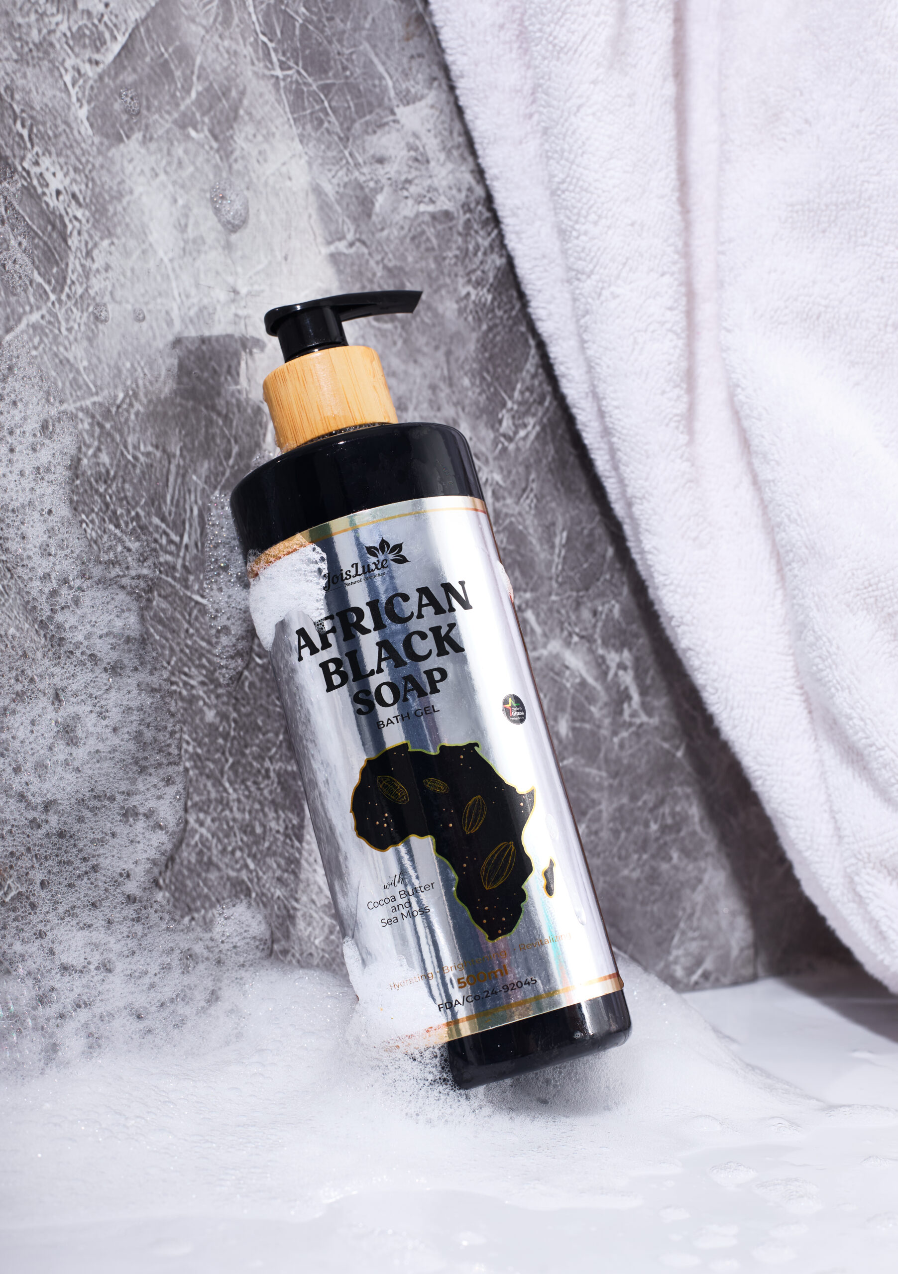 Richly foaming African Black Soap Bath Gel lifts away dirt, oil, and impurities while deeply hydrating with cocoa butter and shea butter. Infusions of mineral-rich sea moss and soothing aloe vera replenish moisture and revitalize the skin. This gentle formula, made with coconut oil surfactants, maintains the skin’s natural balance, leaving it soft, smooth, and refreshed with a subtle, earthy aroma.