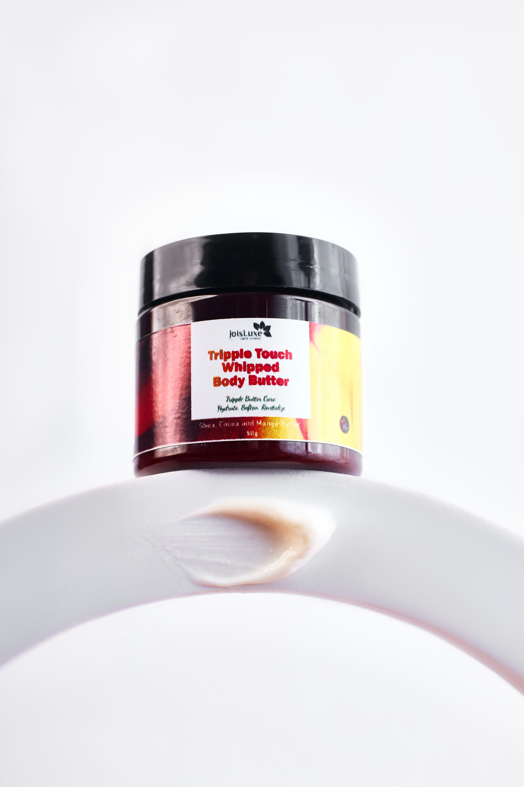 A pure and creamy body butter made with shea butter, cocoa butter, and virgin coconut oil to deeply hydrate and repair skin. Enriched with baobab seed oil and castor oil for added nourishment and a non-greasy finish.